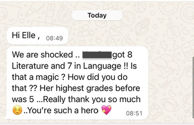 "Ms Elle took my working grade from a grade 7 to a 9 in both language and literature.
